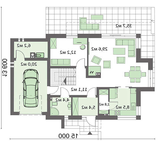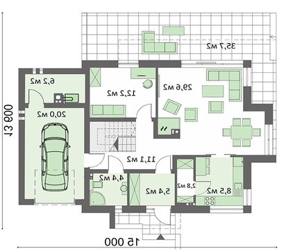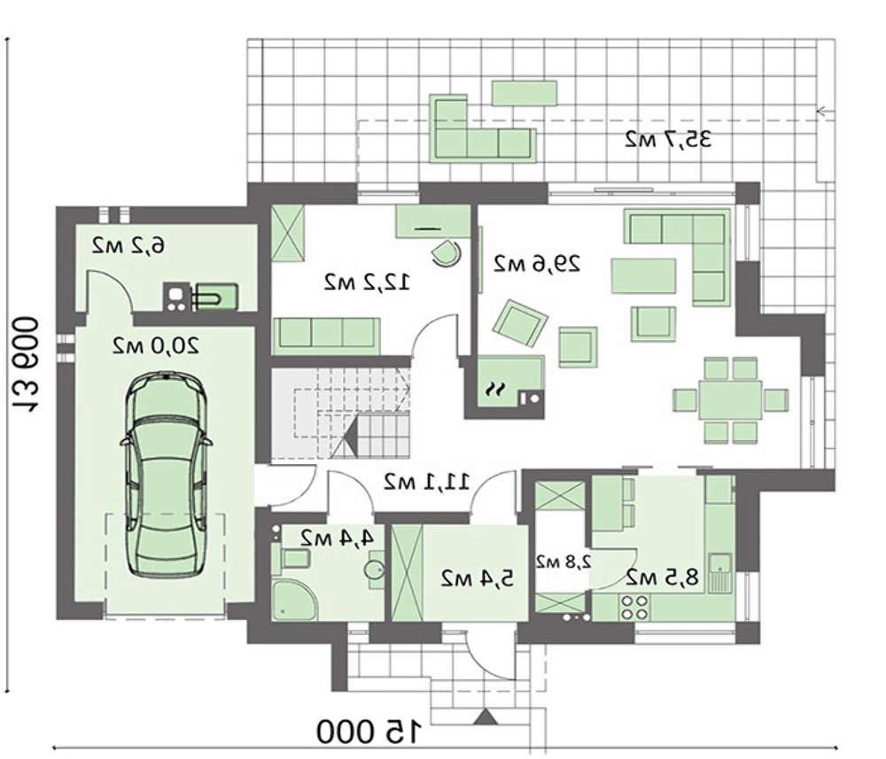 Проект содержит три раздела – Архитектурный, Конструктивный и Инженерный: водоснабжение, отопление, вентиляция, канализация, электроснабжение (приобретается за дополнительную плату) + Пояснительная записка.