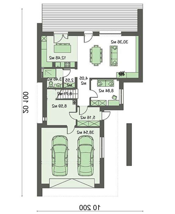 Просторный гараж понравится мобильной семье, предпочитающей подвижный способ жизни. Площадь почти в 40 квадратов рассчитана на два транспортных средства.