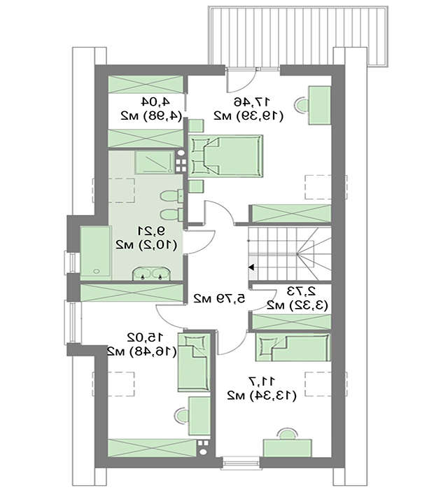 Под личные помещения отведен второй этаж. Здесь расположены три спальни. Разные площади и размеры дают жильцам возможность выбора. Дополнительным бонусом будет личный гардероб и балкон для апартаментов хозяина.
