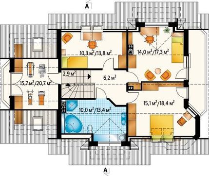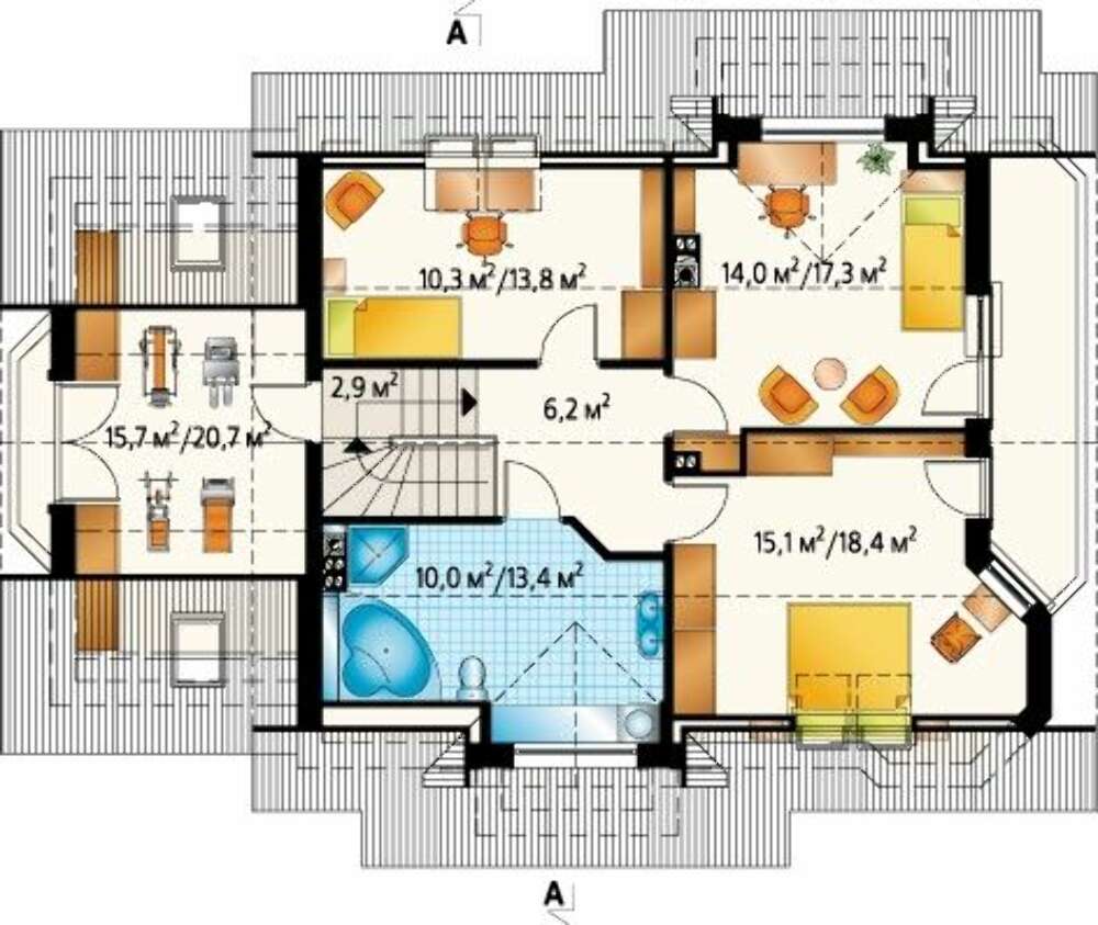 Запоминающийся проект дома с мансардой площадью до 200 m²