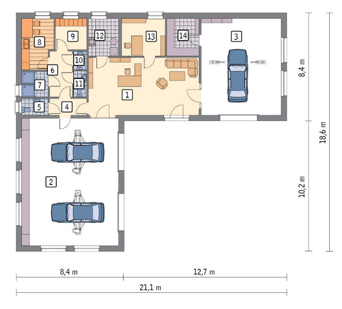 Проект содержит три раздела – АрхитектурныйКонструктивный и Инженерный: водоснабжение, отопление, вентиляция, канализация, электроснабжение (приобретается за дополнительную плату) + Пояснительная записка.
