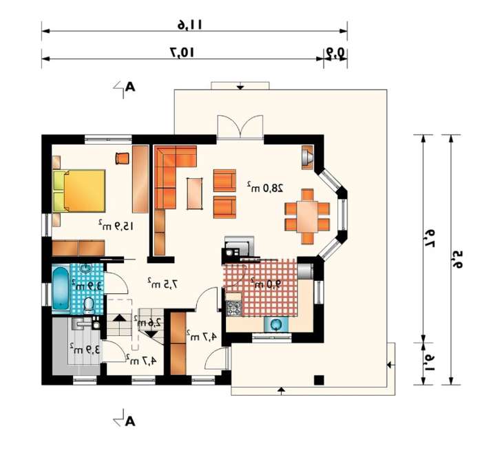 Жилой дом на 125м2 жилой площади под двускатной крышей 4M3467