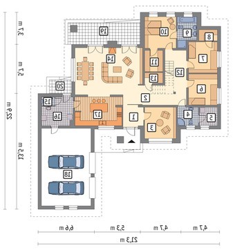 Проект содержит три раздела – АрхитектурныйКонструктивный и Инженерный: водоснабжение, отопление, вентиляция, канализация, электроснабжение (приобретается за дополнительную плату) + Пояснительная записка.