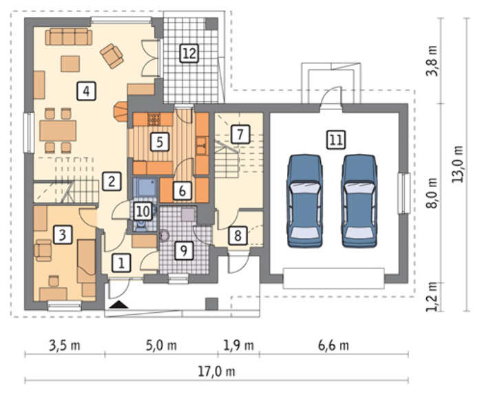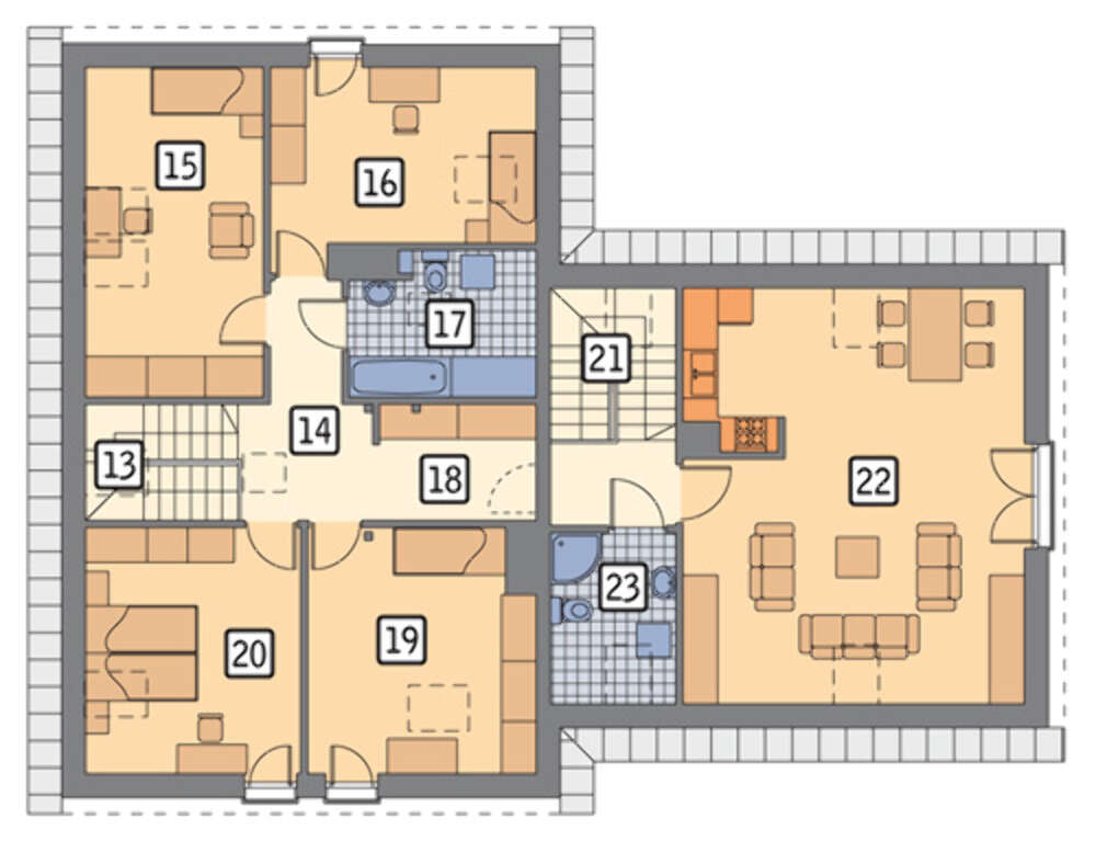 Проект содержит три раздела – АрхитектурныйКонструктивный и Инженерный: водоснабжение, отопление, вентиляция, канализация, электроснабжение (приобретается за дополнительную плату) + Пояснительная записка.