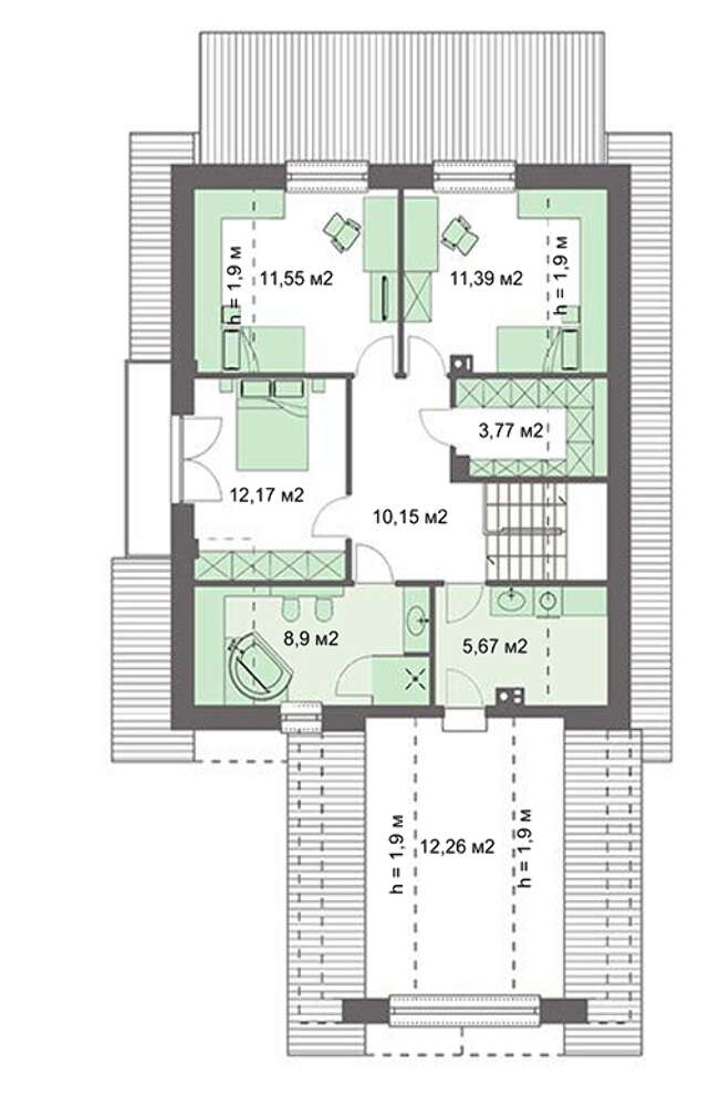 Словно сошедший с океанского побережья, красивый дом с мансардой готов стать надежным укрытием от жизненных непогод для большой и дружной семьи. Декорированные кирпичом поверхности стен напоминают мелкую гальку пляжа и по цвету отлично сочетаются с деревом оконных и дверных проемов. Для размещения жильцов имеется три спальни второго этажа. Небольшой балкон позволяет домовладельцам достаточно времени проводить на свежем воздухе, в романтической вечерней обстановке провожать солнце и прохладным утром выпивать чашку бодрящего кофе.