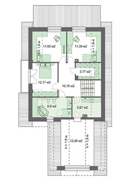 Проект содержит три раздела – Архитектурный, Конструктивный и Инженерный: водоснабжение, отопление, вентиляция, канализация, электроснабжение (приобретается за дополнительную плату) + Пояснительная записка.