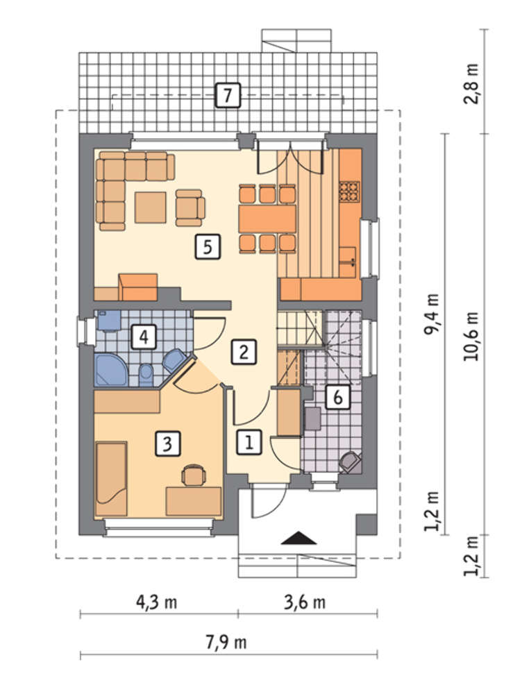 Проект содержит три раздела – АрхитектурныйКонструктивный и Инженерный: водоснабжение, отопление, вентиляция, канализация, электроснабжение (приобретается за дополнительную плату) + Пояснительная записка.