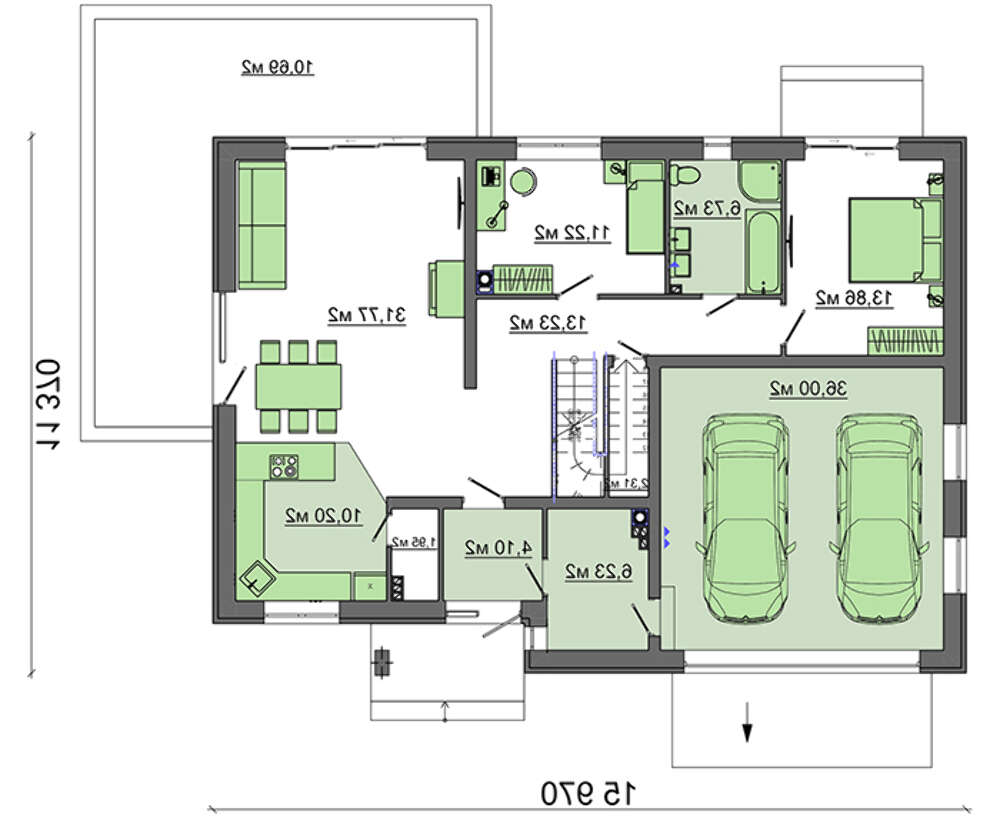 Проект содержит три раздела – Архитектурный, Конструктивный и Инженерный: водоснабжение, отопление, вентиляция, канализация, электроснабжение (приобретается за дополнительную плату) + Пояснительная записка.
