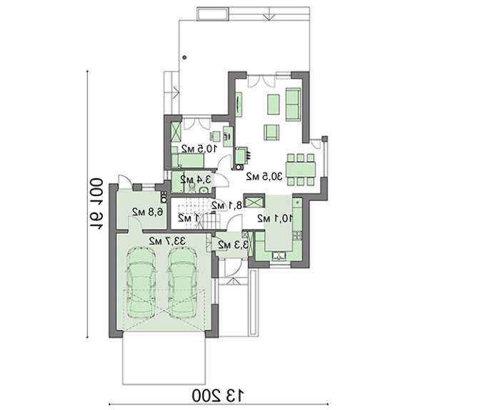 Спальни второго этажа выигрывают за счет пространства балконов. В большой семье под личные апартаменты можно меблировать отдельную комнату первого уровня. Под просторный гараж выделено более 30 квадратов, такие размеры высоко ценятся семьями с несколькими транспортными единицами.