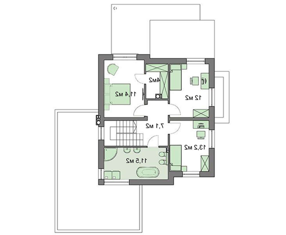 Жилой двухэтажный дом оригинальной планировки 4M407
