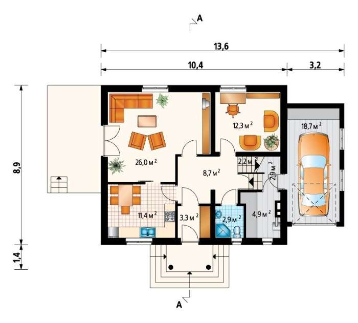 Проект содержит три раздела – АрхитектурныйКонструктивный и Инженерный: водоснабжение, отопление, вентиляция, канализация, электроснабжение (приобретается за дополнительную плату) + Пояснительная записка.